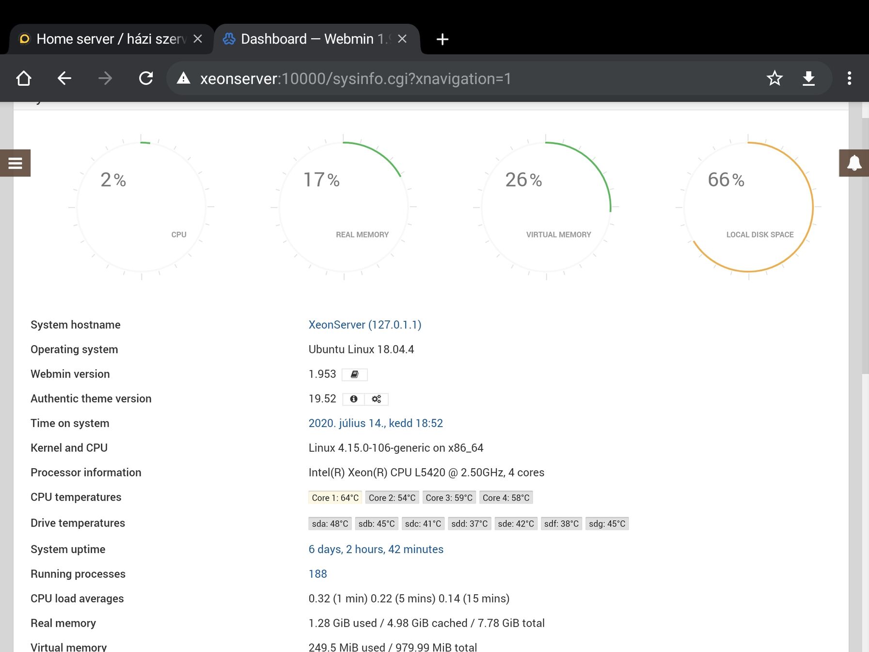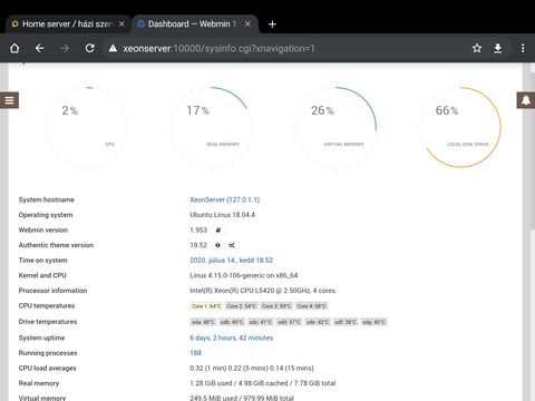 A qui a WEBMIN progié. A server neve a Xeonserver. De annak nevezed el aminek akarod.