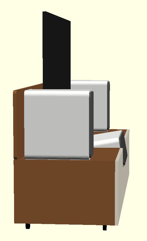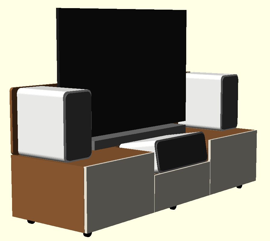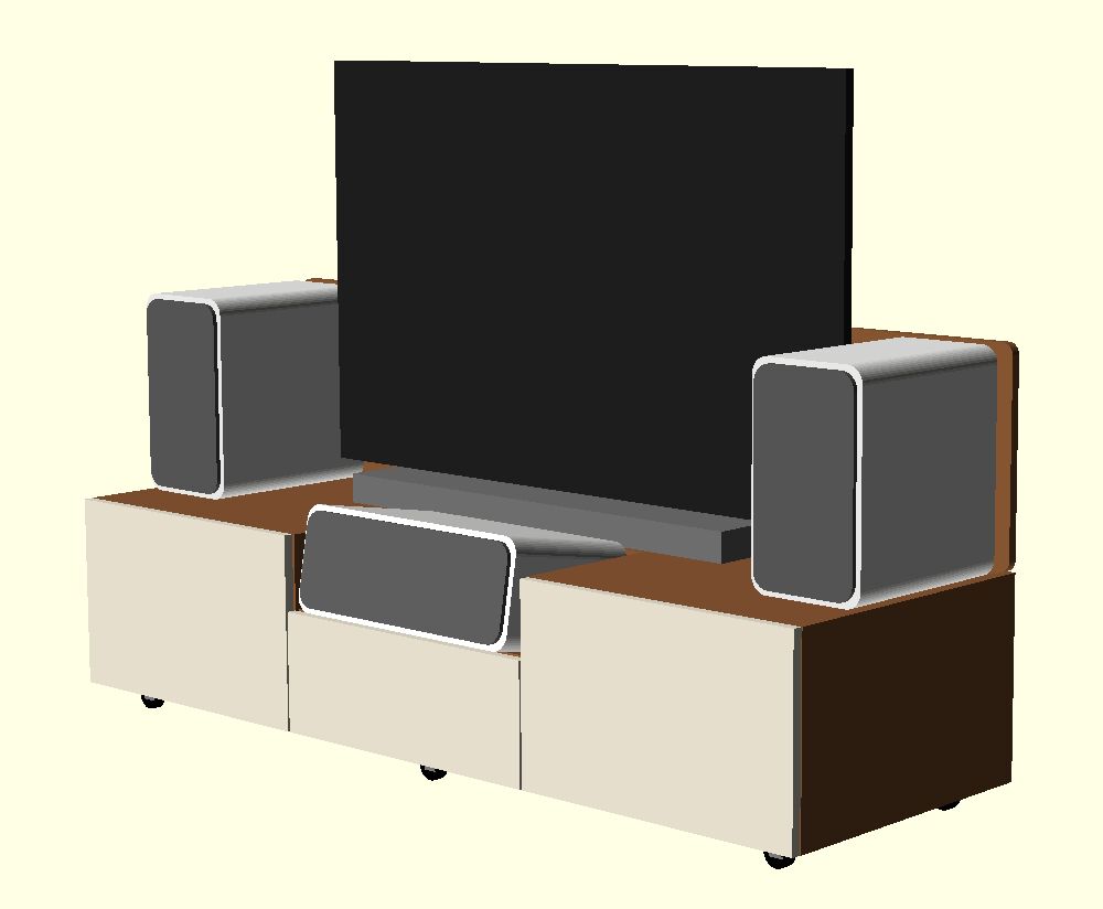 A hátsó panel ami a hangszórók mögé emelkedik tudom hogy nem túl jó ötlet, viszont az asszony ebből nem enged, mivel szerinte a TV és a hangszórók hátulja csúnya, és a konzol olyan helyen lesz, ahol hátulról is nézegetni fogjuk.