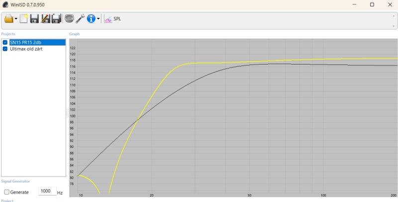Ha igaz mond a Winisd akkor ez lesz a különbség az ultihoz képest, room gain nélkül, de PR-el tudom hangolni. Sárga a Signature a fekete a jelelnegi Ulti. Azt is hozzá kell tenni, hogy a 23Hz körül a Delay a PR miatt sokkal nagyobb lesz mint a zárt esetében.
