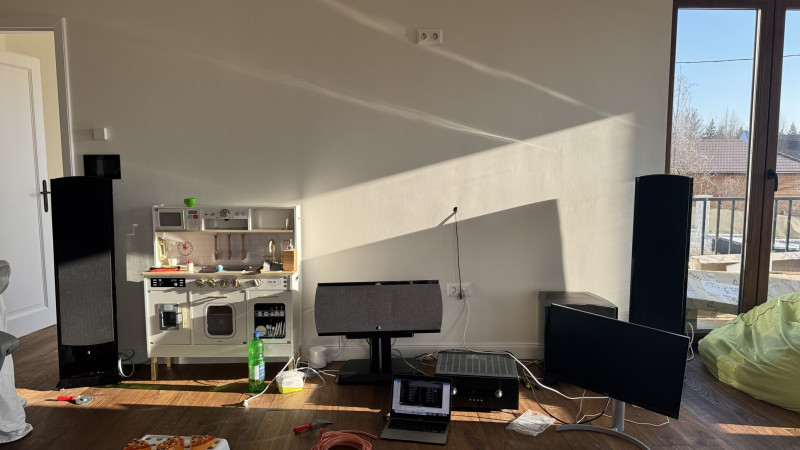 Az akusztika sajnos pocsék. Óriási a tér minden irányban (50nm+ és mellé néhol 5-6 m belmagasság, sok üveg stb. (Ez egy étkező+nappali)
