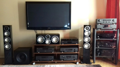 Ezek HDMI kábellel csatlakoznak egy Pioneer VSX-LX70 házimozi erősítőbe, amely csak a centert hajtja. A háttereket egy Pioneer A-509R sztereó erősítő (mint végfok) működteti.