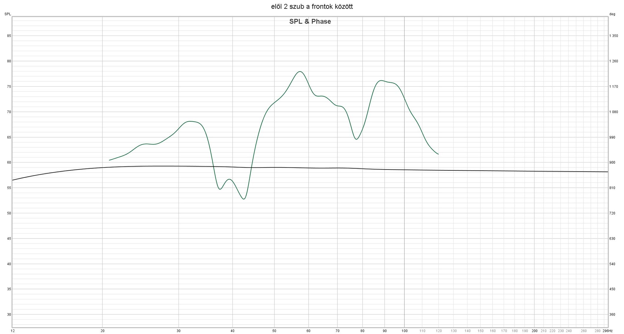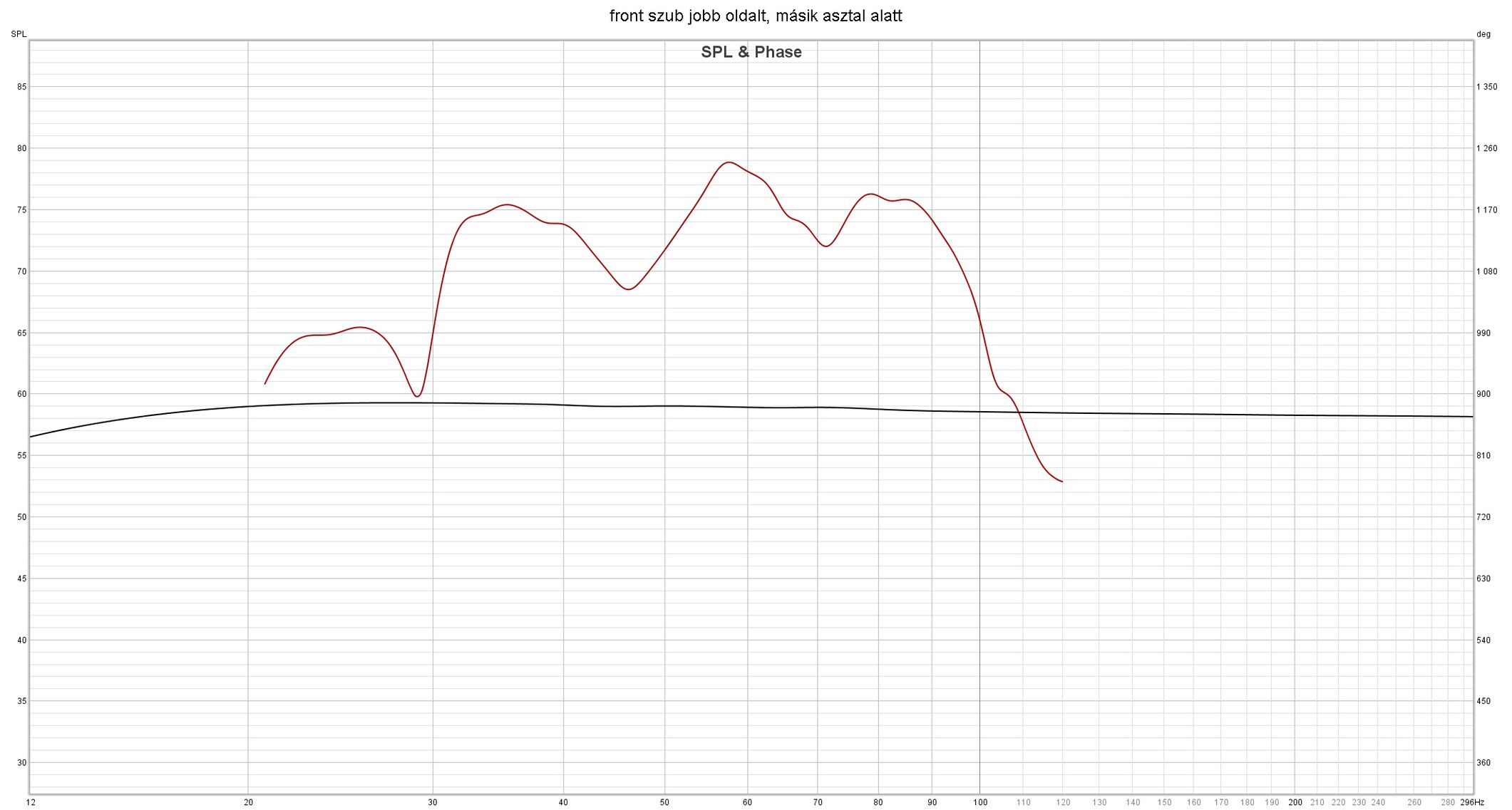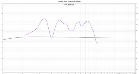Itt kipróbáltam az svs appban hogy mi lesz ha az asztal alatti (hátsó) szubnál a polaritást megfordítom negatívra, merthogy ilyet is tud. Itt nagyot javult sztem a dolog, feljött a 20-25hz tartomány egy kicsit és simult az egész: