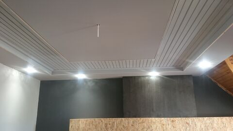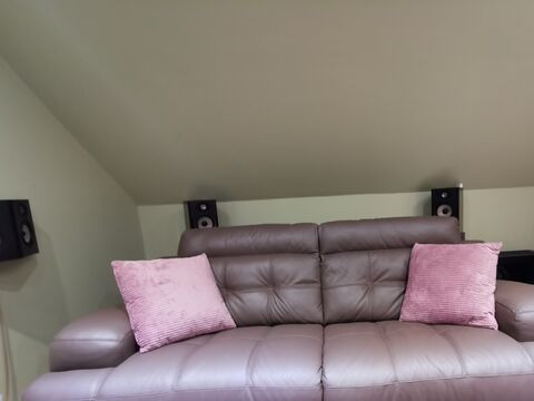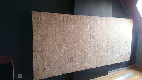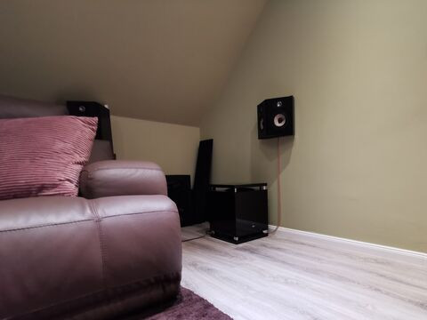 Elkészítettem a 4db zárt dobozokat az atmos hangsugárzóknak. Bükk rétgelet lemezből éleknél körbe vasalva + ragasztva csavarozva. Reggel felmentem a padlásra 30-35cm üveggyapot szigetelés felhajtottam lecseréltem ideglenes obi dobozokat a 20 literes bükk dobozra + hang csilappító, fejjel lefelé leragasztottam szilóval a gipszkartonra.