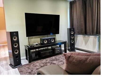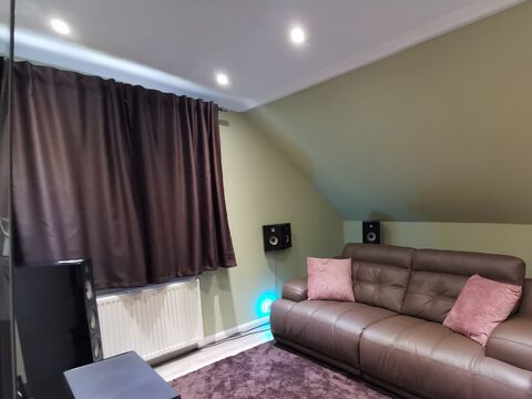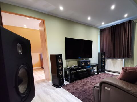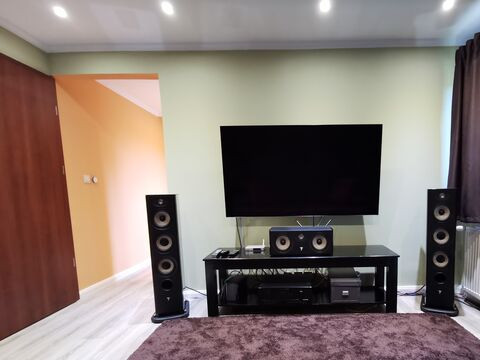 Javaslom hogy legalább a TV mögötti falat fesd át sötéttel, iszonyat javulást adhat a képi élményhez. Én nappaliban először jet black (matt, kevert) színnel próbálkoztam de elég vad lett lakótérbe, aztán átkentem Dulux füstös rúnakővel ami már sokkal barátságosabb de így is sokat ad a mozis élményhez.