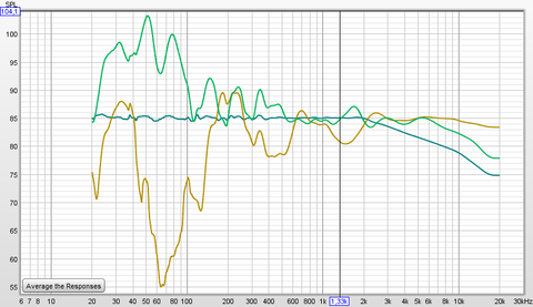 Zöld a kiindulás, sárga a Dirac, kék a Cavern (X-Curve-re állítva, a flat nyilván flat lenne).Lehet, hogy valaki szerint a valósághoz a 20 dB-es dombok állnak közel, vagy a Dirac minimális számú filterei által okozott kráter, de én bárhogyan nézem, a szénné EQ-zott görbe a legszebb, legvalósabb, és ez fülre is egyértelmű. Nyilván ízlés dolga, hogy ki szereti, ha hiányzik minden mély, esetleg ha csak az van, de ne mondjunk már olyan marhaságokat, hogy ennek akár csak kicsi köze is lehet a valósághoz, mert semmi nincs.