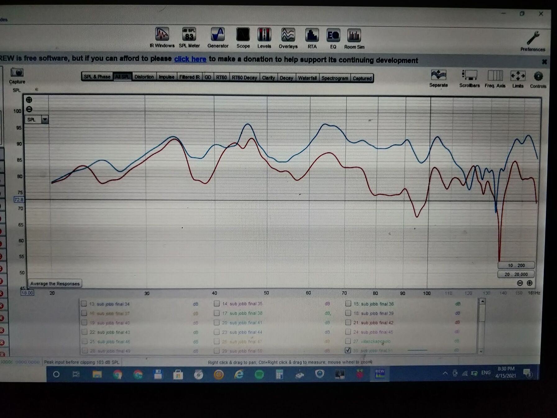 A második viszont minidsp-vel korrigálva, kicsit mást mutat.