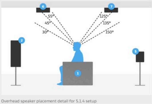 Az erősítő egy Denon AVR X4300.A Dolby Atmos guide szerint 5.1.2 esetén picivel a nézőpozi elé kell tenni a hangfalat: