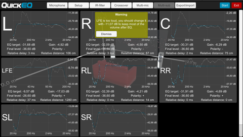 - ha az egyik hangszóró túl hangos, ezért vissza kellene venni az összesből, akkor feldob egy figyelmeztetést, hogy állítsd az AVR-en, vagy ahol tudod, és mennyivel (kép relációban)