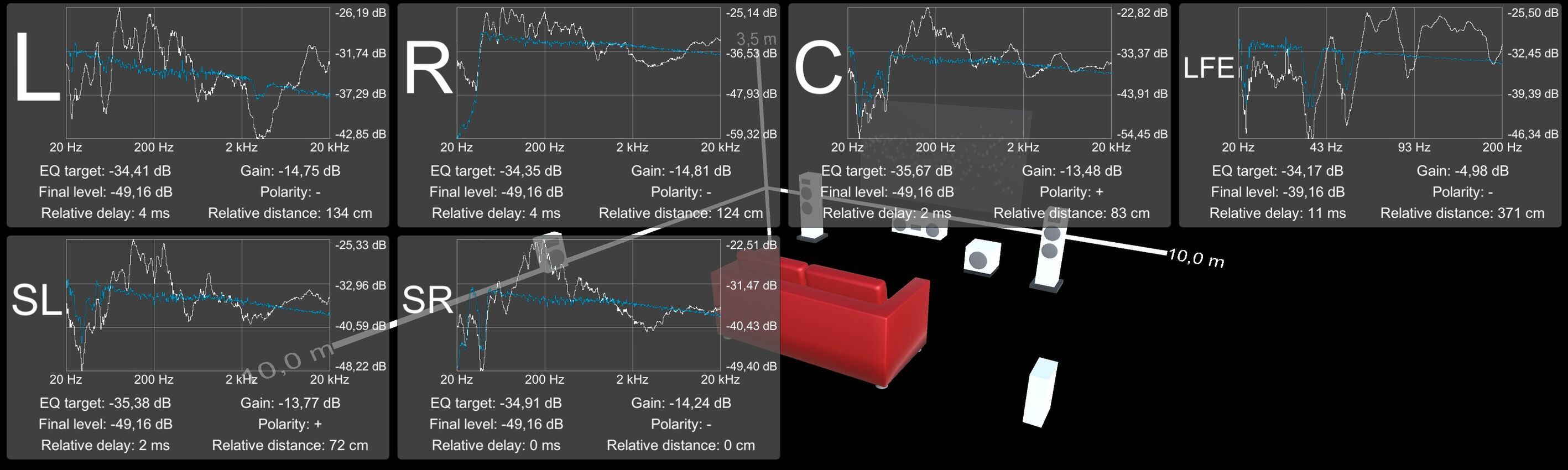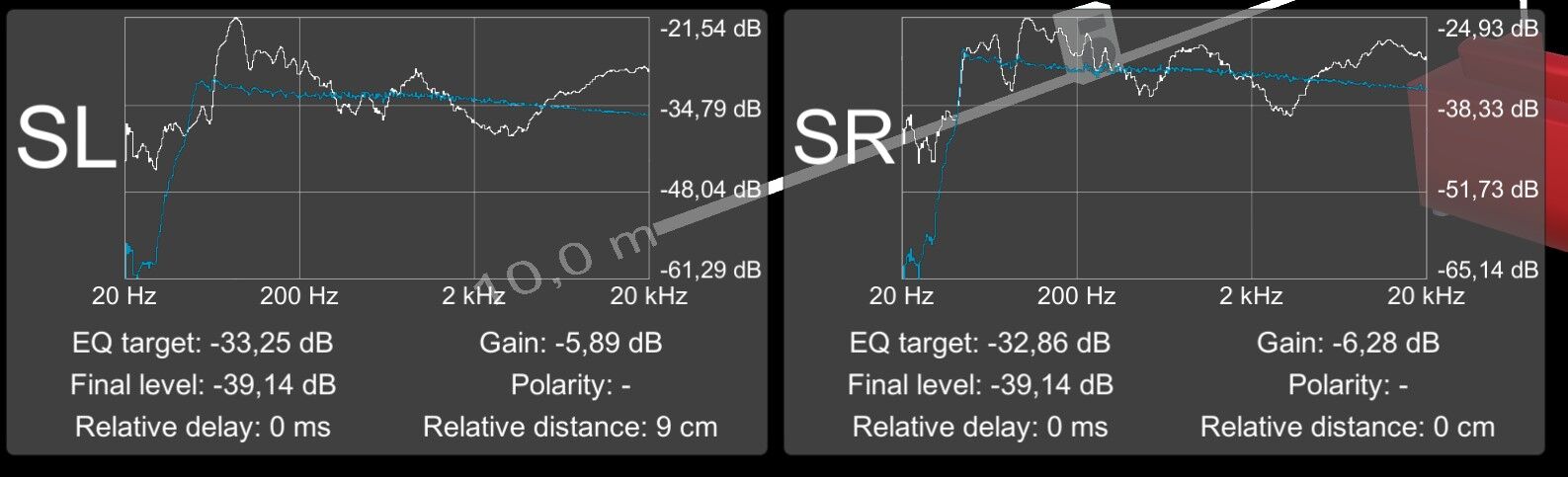 -Cavernnal kimértem a távolságokat F-R-C-SR-SL- és a bal első subbot. Kimértem cavernnal a 4 db atmos hangsugárzó távolságát. Nem PC-s processzálást szeretnék Atmos miatt, de cavernnal mértem a távolságot, valahogy nem bízom ebben a centivel kimérjük dologban.
