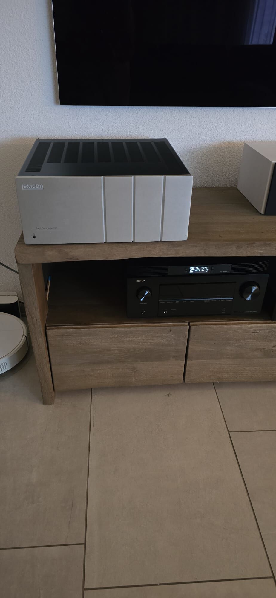Ekor Meridian kontroller és aktív hangdobozok (DSP 5000), Velodyne SPL szubládák alkották a csapatot, amit később ELAC csúcs széria váltott, 3 db JBL szubládával, az sem szólt kielégítően. Mivel megtehette, építtetett egy másik házat, különálló moziszobával, oda költözött, azóta fülig érő szájjal néz filmeket és hallgat zenét. Arról sajnos nincs fényképem.#188208-KP-