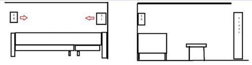 Oda raknám fel kb 1,2m magasságban a falra és befelé fordítanám,hogy a falról jöjjön vissza a hang.Mint a képen. A frontokkal egy vonalban lenne. És a vissza verődő hang oda mennyen ahol ülünk.