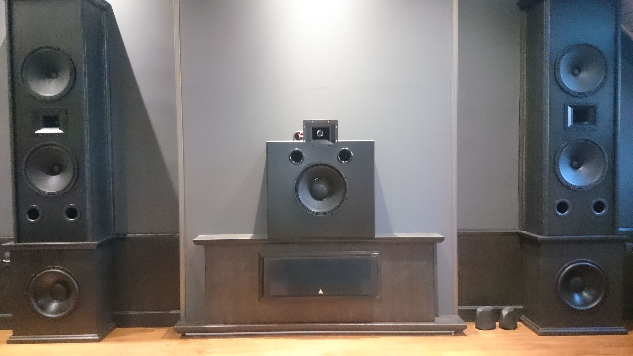Nekem a legnagyobb előrelépés a vászon mögé rejtett LCR hozta, semmi sallang az erősítők is rejtve vannak, csak az oriás vászon és keret árulkodik, hogy van valami betegsége a tulajnak. A másik meg a PA vonalra lépés, igaz nálam a szerényebb változat található mint más sorstásnál, de azért hozza a várt szintet, már nem váltanék vissza "hifis" vonalra, max 1-2 finomítás még.