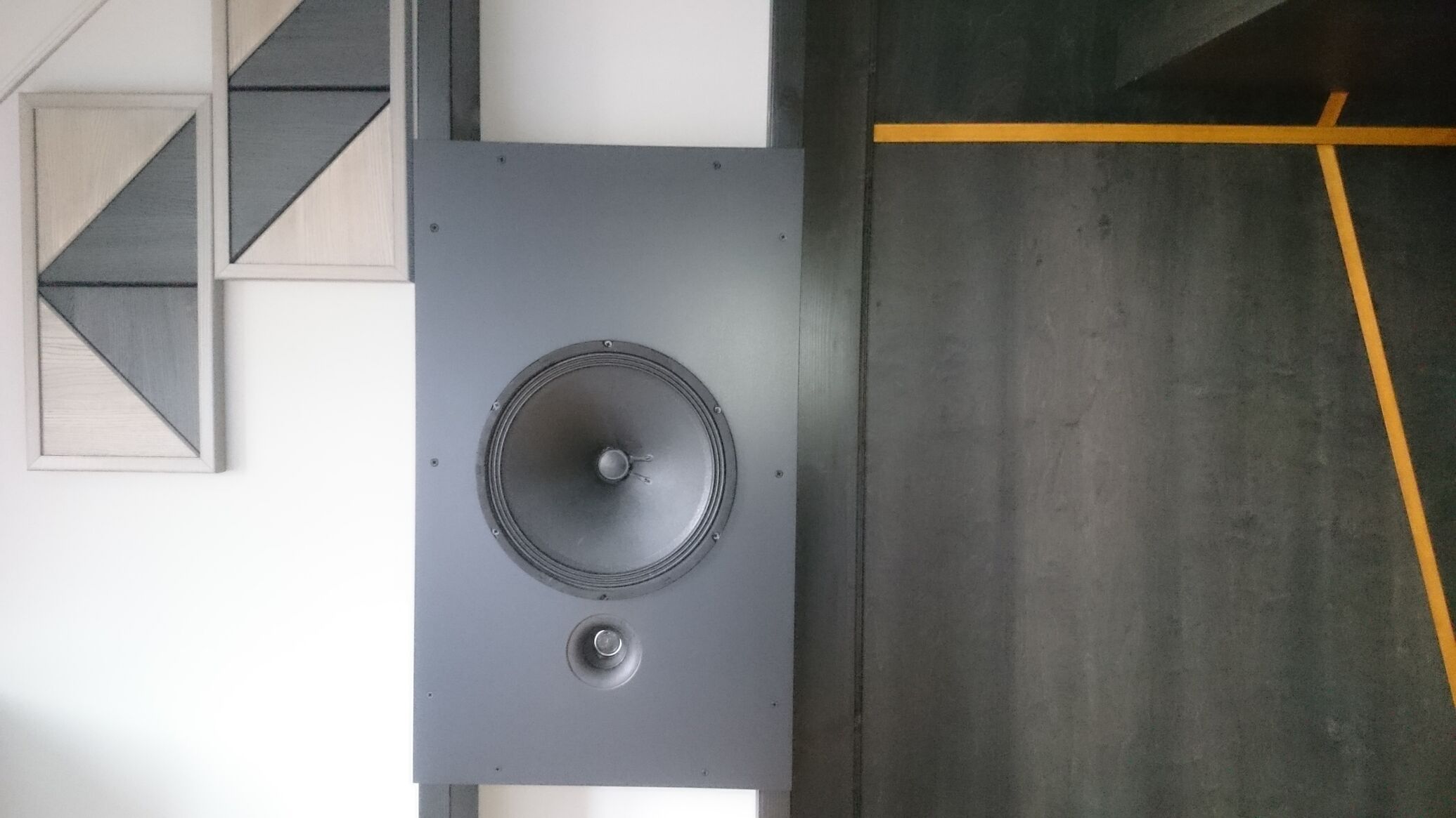 De ami most zavar, hogy visszatettem a dobozt a vászon mögé, és most összekuszálódott minden. Modifikálás miatt a szoba közepén mértem a dobozt, így nem volt ami bezavarjon annyira a képbe, de most a falak közelsége, és a fakeretek, sarkok teljesen tönkretették a frankó frekvenciamenetet. Most egy rakás elnyelő anyag kell, ami megszünteti ezt az állapotot.
