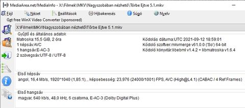 X264 (mkv) filmek kb. ilyen hangsávokat tartalmaznak: Hungarian Dolby Digital Audio /AC3/ 448 kbps vagy 384 kbps 5.1.