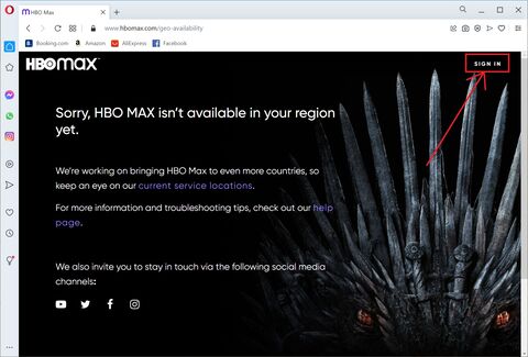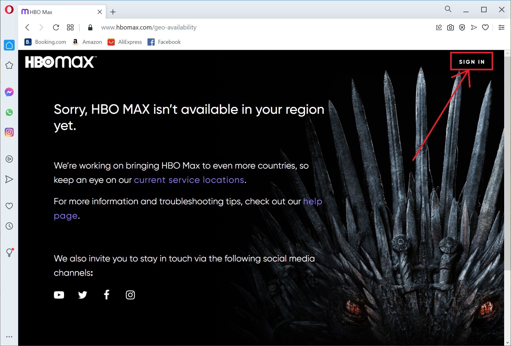 - az EU országaiból nincs szükség VPN-re a tartalom nézéséhezAttól, hogy a HBO MAX weboldala azt jelzi, hogy a régióban nem elérhető a szolgáltatás, még be lehet lépni, így: