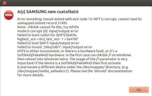 Mai reggelen win7-en áthelyeztem a fontos fájljaimat a HDD-re minden tökéletes hiba nélkül átment, de a HDD-t a gépehez csatolva hagytam és újra indítottam, átmentem Ubuntra ahol ez a hiba üzenet fogadott:Aminek nagyon nem tudtam örülni, gondolom kisebb logikai hiba lehet, hogyan lehetne megoldani? Esetleg vigyem szakemberhez? Kit ajánlotok?