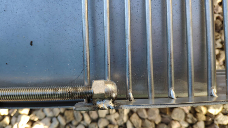 És ott az a 2 fogantyú, ami lemaradt a tervrőlGondolkodtam, hogy s mint kéne ezt megoldani. Pont volt itthon egy majdnem teljes szál 10-es rozsdamentes menetes száram és pont 2db zárt anyám. Úgyhogy gondoltam egyet, és elmentem rozsdamentes elektródát venni, hogy akkor én azt oda felpöttyintem, és így a fogantyú még levehető is lesz.