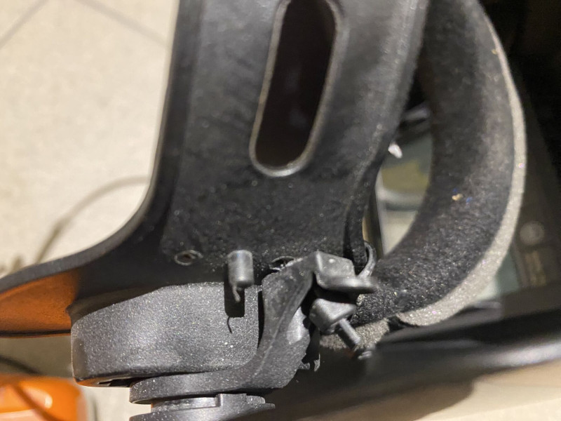 Szerencsére a szorító így is működik, a “fogasléc” az alsó részen van. A 4 db pöcök nagy része, amivel a lecsukódást lehet állítani, az meg letört. Kábelkötözővel megoldva, oszt’ jónagyot.