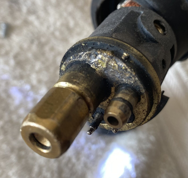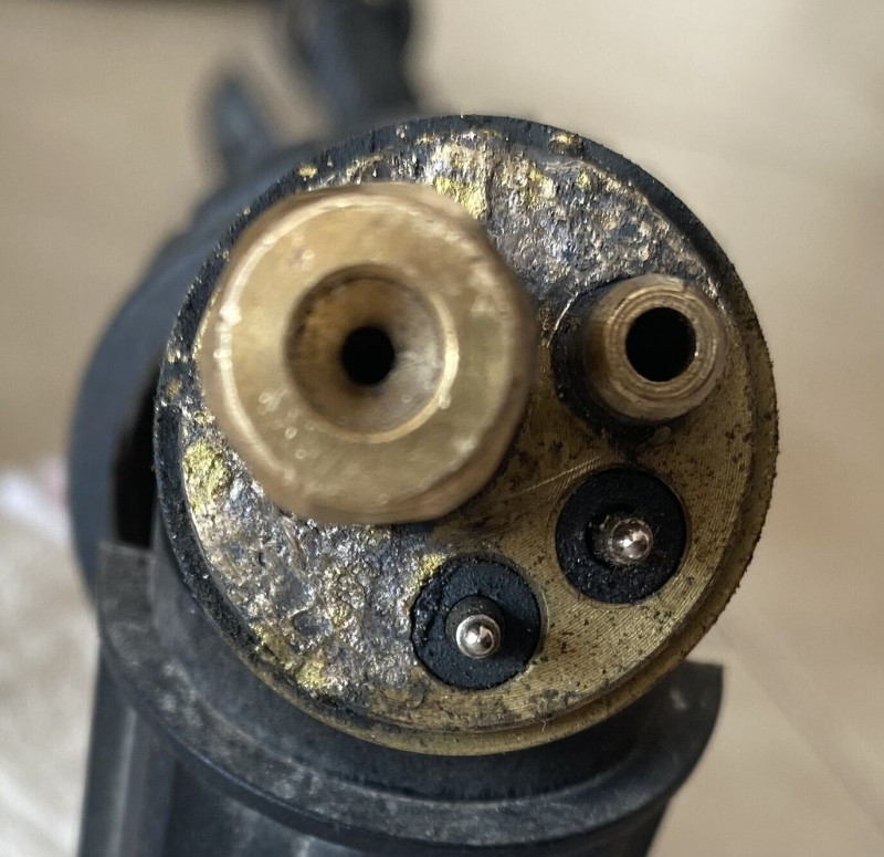 A szétolvadt euro dugót azt már csak otthon szúrtam ki, nem voltam boldog, de 2700 Ft-ért pótoltam. A pisztolyhoz kellett a közdarab-áramátadó-gázterelő hármas, ezek filléres dolgok. A pisztolyt szétszedtem, szépen kitakarítottam, kívül levakartam a kiálló cunder nyomokat.