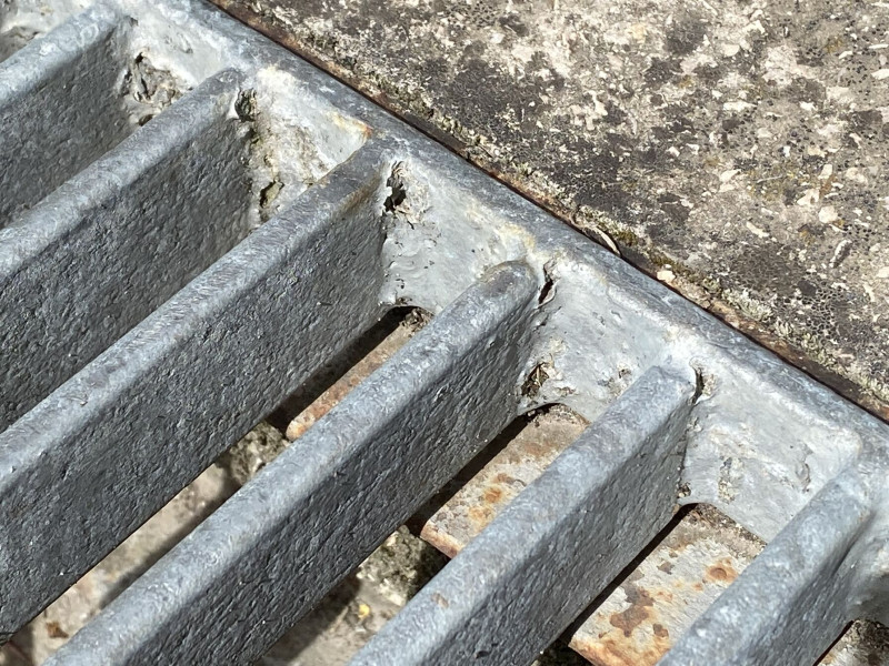 Igen, ennek ez a sorsa. Ahogy a beton meg a laposvas közé beviszi az eső a port onnan dolgozik a sár és minden hajnalban ázik a levegőből lecsapódó pára miatt ha esik, ha nem. Jó vastag ez a 3 centis laposvas, az enyém csak 3mmx3cm.