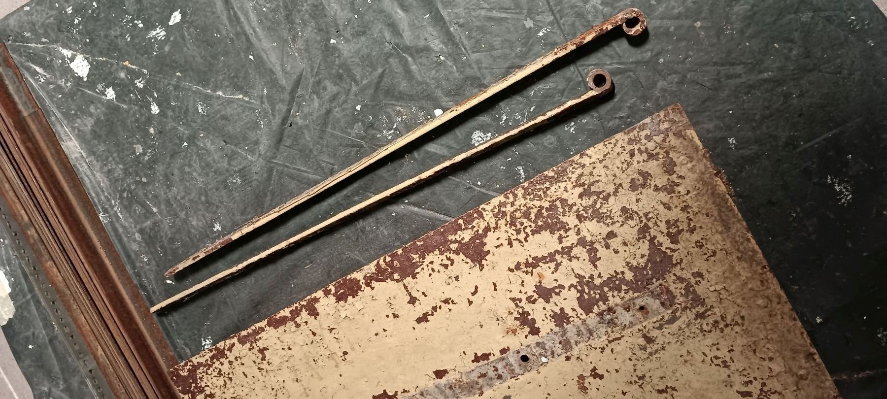 . Régi ajtóról leszedett sarokvas vagy mi ami már múzeumba se jó ilyen díszes nagy levél szerűre szétlapította a lapasvasat a kovács, hogy 2 szeggel fel lehessen ütni az ajtóra. Egy ilyennel marha jól lehet salakot kalapálni ( kalapács helyett) mert a kilapított rész beférhet a "kettévált" azaz a soha eggyé nem vált varat közé, kipiszkálni a salakot .. lehet tolni ütni vakargatni, meg rohadt jó régi vasanyagból vannak.