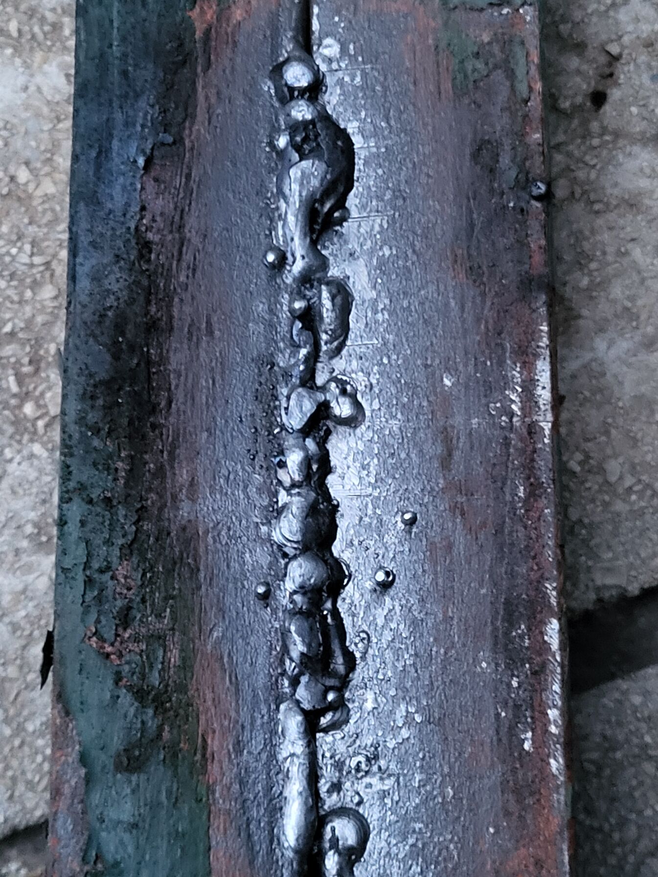 Első próbálkozás bevont elektródával. Nem volt teljesen fémtiszta.