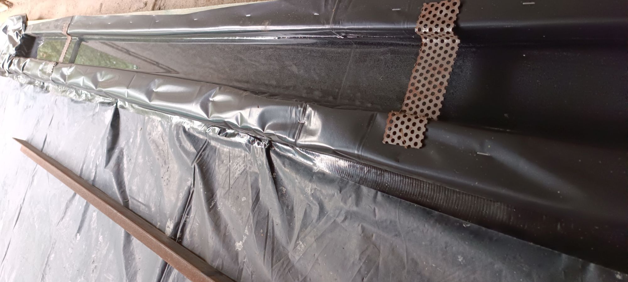 A medence alatt van a betonban egy eresznek fúrt lyuk. A legvégén majd ott szúrom ki a fólia alját egy egyes fúrószárral és szépen kicsepeg majd ott a savas öblítővíz belőle pár óra alatt. Addig meg le lesz takarva.