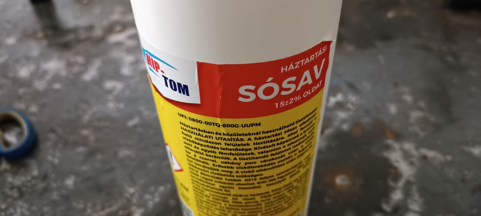A módszer működik, ott lassult be, hogy a Hunpohar nevű üzletben vettem a savat és bár a weblapjukon 20%-os van, élőben ez a 15 +/- 2% -os volt csak és ezzel picit megszívattam magam, mert hát elég rozsdás is és ez elég szar anyag. Ilyet ne vegyetek szerintem. Nem két perc így egy szál. Tuti, hogy ez inkább 13% ez és nem 17%.Gyanús volt, hogy 360 HUF-ért cserébe nem a legtöményebb lesz ez, csak akkor még fejben úgy voltam vele, hogy úgy is híg medencét akarok, tökmindegy. Így viszont, hogy töményen ecsetelem felette így utólag jobb lett volna a töményebb, de tökmindegy, lényeg, hogy a környezet az sértetlen marad.