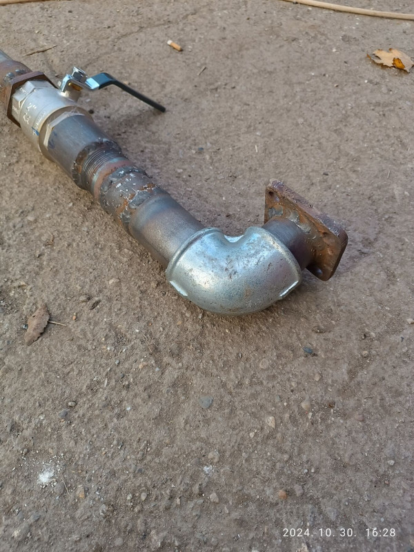 Vettem 9000 Ft két és fél méter 59 mm vékony falú csövet , azért 59 mm mert az volt , a végeit bevagdostam kis flexel szépen megnyitottam rá tettem a dobra a vágás végeit be hegesztettem , hogy szikra ne menjen ki , a kanyarokat is be vagdostam , hajlitottam megint vágás hajlitás és a vágásokat meghegesztettem , és lett olyan mint a gyári , azóta is üzemel !! -