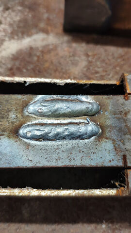 Ma elvittem ki e gépet palackostúl a főállású hegesztő egyéni vállalkozó és hegesztés oktató barátomhoz, akit korábban írtam. Beüzemeltük a gépet és több módban is kipróbáltuk. Az eredmény brutál jó lett. Ez ugye szinergikus vezérlésű gép. 4-es falvastagságú 100x100-as zártszelvényt 125 A-re állítva, a feszültséget meg +/- 0 értéken hagyva gyönyörű egységes, és normálisan beolvadt varratokat adott. A szakember is meglepődött, hogy egy ilyen kis olcsó gép ilyen szépen dolgozik. Ő beállította a töltőhuzal adagolónál a görgőfeszítőt is, mert én picit túlszorítottam, amikor összeraktam. Ja és amitől picit tartottam, tiszta CO2-t használtunk és gyönyörű, egyenletes varrat lett, semmit sem fröcskölt. Kaptam tőle vagy 30 db 7x30 cm körüli laposvasat, hogy hétvégén legyen min gyakorolnom. -