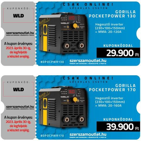 Hátha valakinek jól jön. Aktívnál akciós a Centroweld 120A MMA inverter + aut. pajzs páros. Ha bedobsz mellé 2.5 kg elektródát pont átléped a 30k-t és ingyen szállítják. [link]