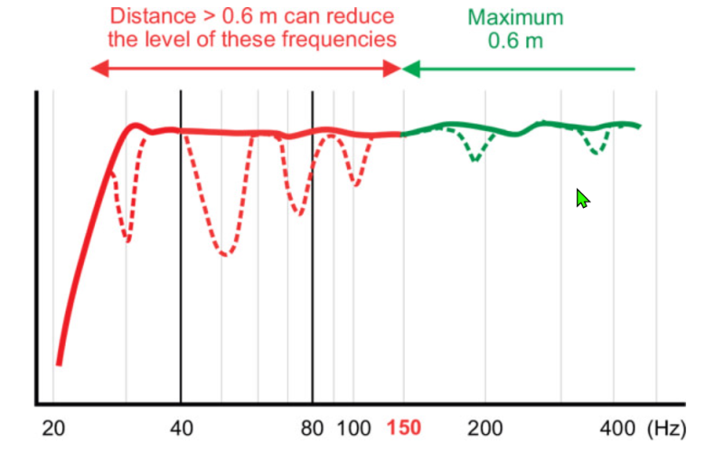 Ez a hullámhossz alapján számolt ajánlás, kb. 50 Hz felett a távolságból fakadó minden szakadást megold, alatta meg úgyis van nagyobb problémád (pl. a szoba mérete). Az is egy jó ajánlás, hogy ne legyen a nyílás átmérőjénél közelebb, mert akkor a portzaj elleni megoldásaikat ütöd ki, de mivel az 50 cm egy jóval nagyobb ajánlás, ezért redundáns. A Genelecnek egyébként van egy ábrája, bár az 60 centivel, hogy vagy 10 centinél közelebb, vagy 60 centinél messzebb legyenek a faltól a hátsó reflexes darabjaik, mert a köztes távolság az, ami igazán elronthatja a hangot - ez megegyezik azzal, amit én mondok, csak ők egy kicsit kisebb frekiig vigyáznak.