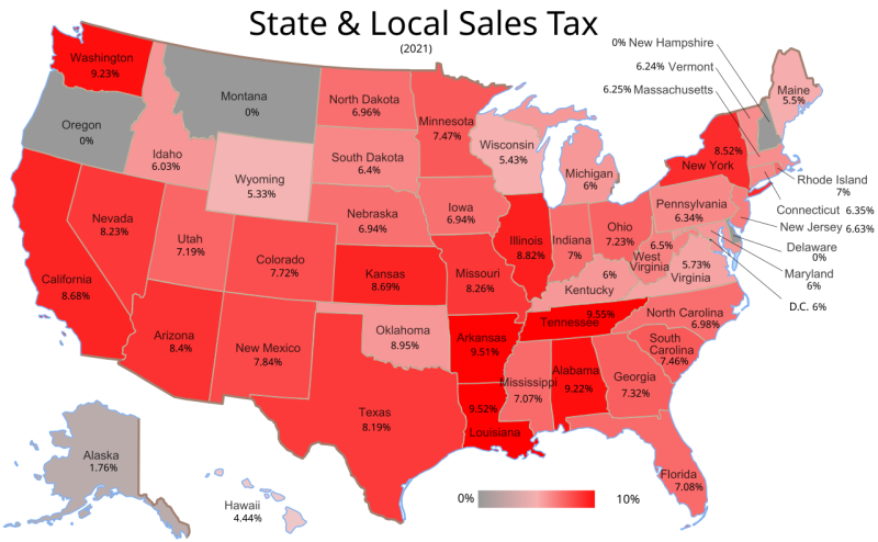Hamburgerföldén a február 4-én életbe lépett +10% pótvám óta legalább ekkora adó sújtja a Kínából érkező termékeket. A szövetségi államok túlnyomó részében 9% körüli a Sales Tax.