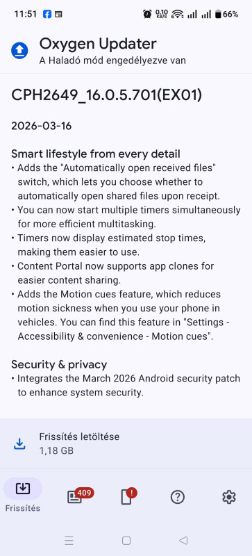 Jött egy új frissítés a telóra. Meg is lepődtem. Ez csak egy kisebb javítás, nincs benne security update.