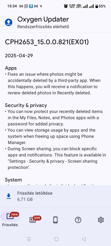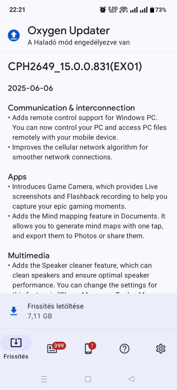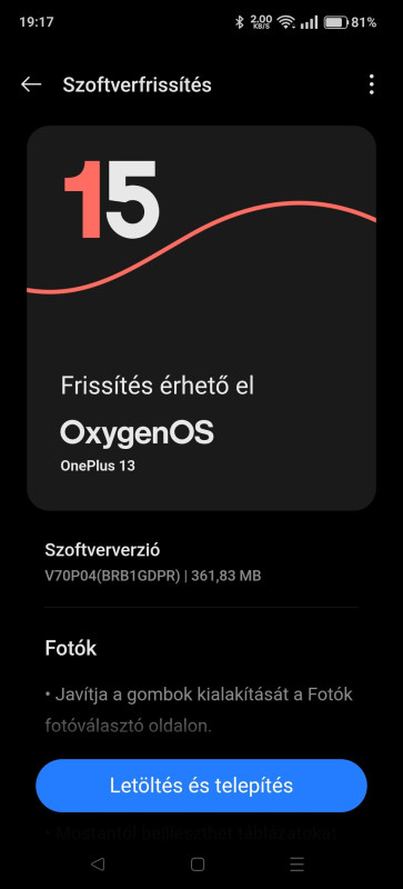 Na, épp most jött egy kisebb update a telóra.