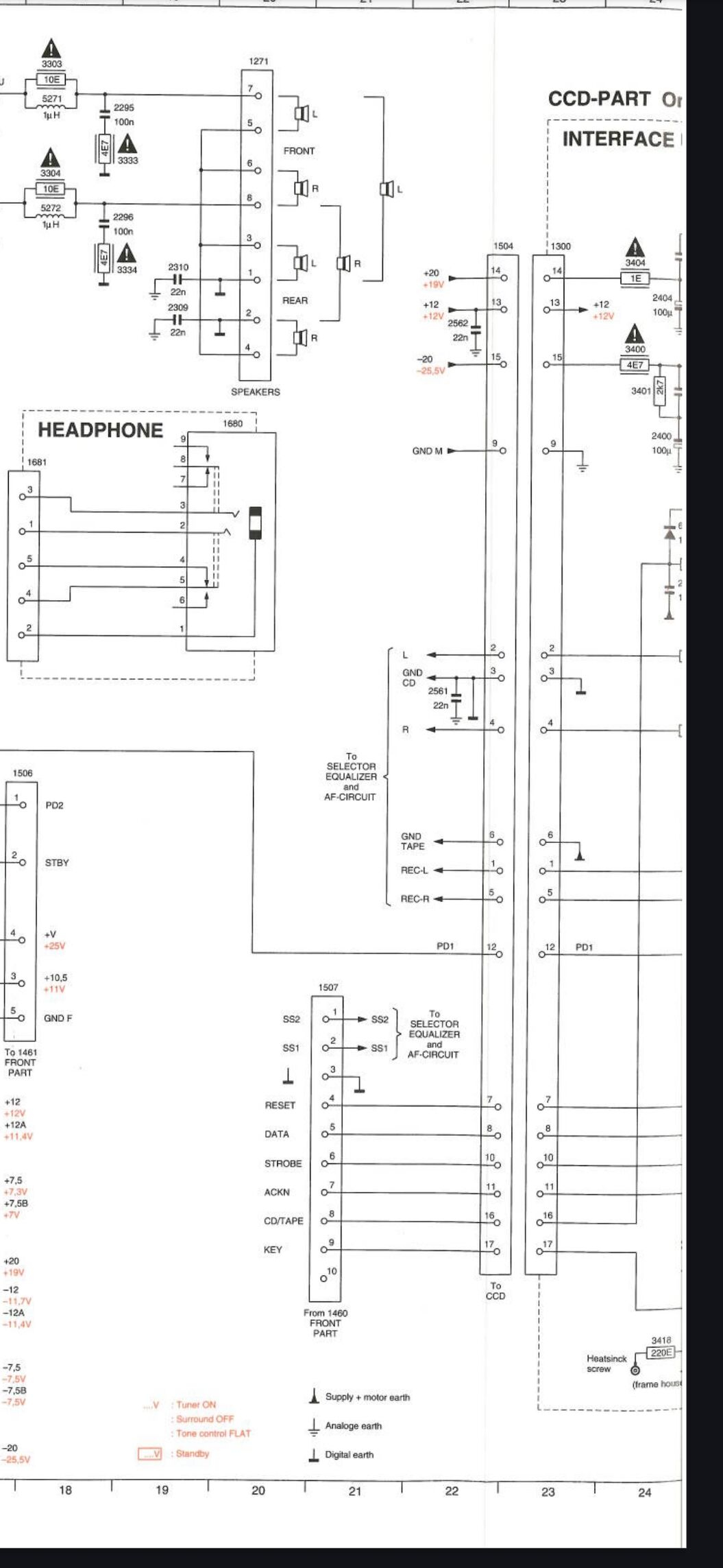 Feszültségméréssel a 13,14,15-ös pon könnyen azonosítható, onnan már csak ki kell számolni a 2-3-4- és pineket. Ezen a rajzon 1504 a csati száma ami az erősítő hátulján van. Amúgy megvan hozzá a cd/tape egység is csak nem működnek? -