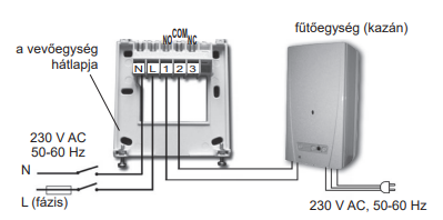 A kazánhoz a verérlőegységet kell csatlakoztatni, azt kapcsolgatja távolról a termosztát.