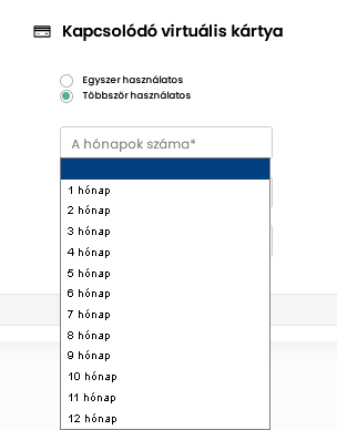 Többször használatos virtuális kártya vásárlási darabszám limitje max 30 db tranzakció/kártya