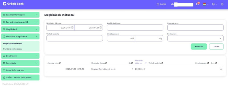 De megnézheted itt: Elküldött Megbízások-->Megbízások Státusza