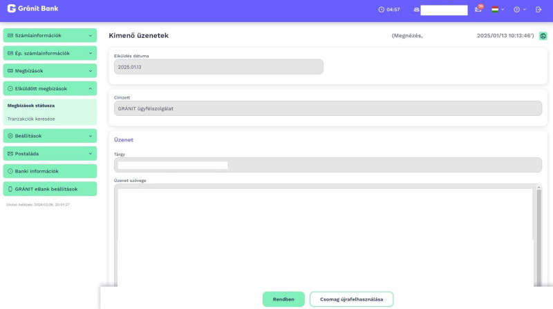 Jól sejtem, hogy a Gránit netbankjában nincsen a postaládában kimenő/küldött levelek mappa? Így tehát hacsak nincs egy böngésző plugined, ami menti a szabadformátumú levél szövegét, nem nézheted meg, hogy korábban mit írtál? Hát ez mondjuk elég meredek.