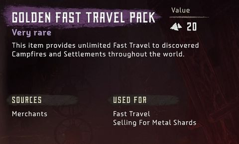 Tábortüzek között tudsz fast travelezni, de kell hozzá fast travel pack amit tudsz craftolni, vagy vásárolni, illetve az árusoktól lehet venni egy lila szinű travel packot is, amivel végtelen mennyiségben tudsz majd utazgatni a tüzek között.
