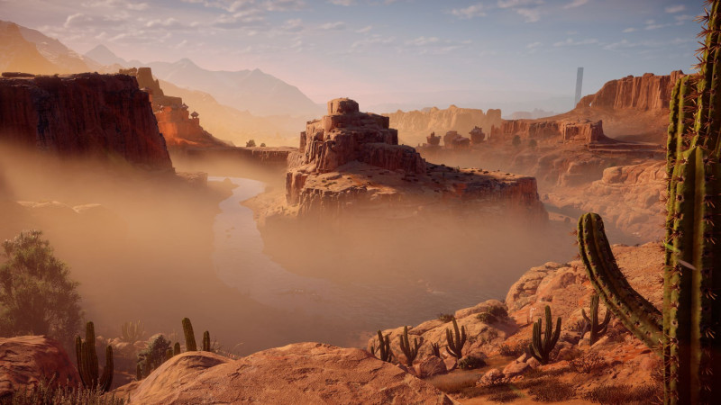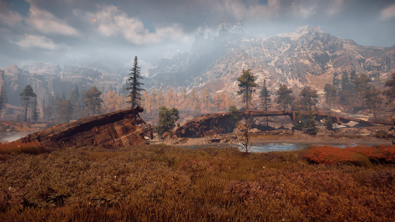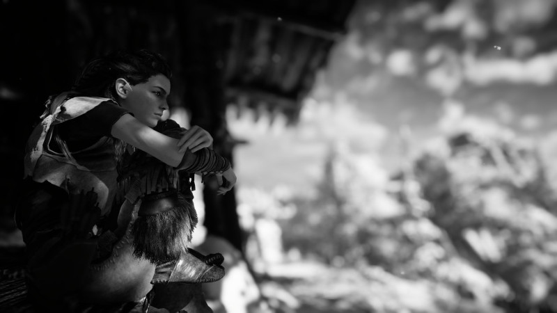 A táj gyönyörű és változatos, szerettem azt "fotózni", fekete-fehér képem pedig csak ez az egy van. Mikor visszatérek a kezdőhelyre, Aloy valami olyasmit mond, hogy Rost nélkül ez már nem az otthona, ez adta az ötletet hozzá.
