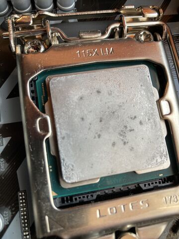 Lehet a hővezetés ugyanolyan jó volt mint első nap, de okádékul nézett ki. Letörölgetésről szó sem lehet, semmi nem oldja. Konkrétan a fém olyan állagú száraz kemény cucc mintha fel lenne forrasztva. Pengével kellett lefaragni rétegenként. Oxidálódott a proci síkja is, a feliratok is eltűntek, eladásnál biztos szívesen vennénk ilyen procit.