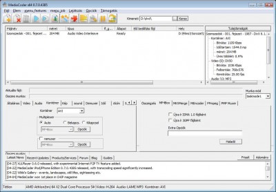 (a video stream-et egyszerűen másoljuk, a hangot meg a Lame Ecoder-rel konstans 128 kbps-os bitrátájúvá konvertálva csapjuk hozzá) -