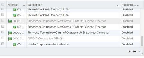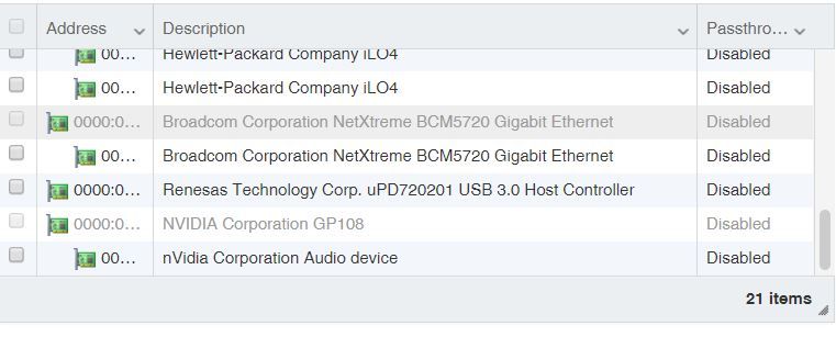 ESXi elindít, managed módban megnézem a passthrough lehetőségét és ez van...