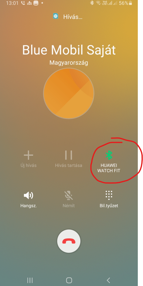 Nekem a P30-on máshogy néz ki ez a kép, ami van hívás közben, nekem is van ilyesmi gomb, ott tudom kiválasztani, hogy a telefon beszédhangszórója, a telefon hátsó hangszórója, vagy Bluetoothon keresztül az óra legyen a hangeszköz.