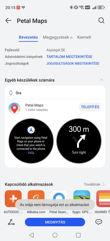 Ami még izgalmas, hogy az Appkezelő szerint a Petal Map nem érhető el az órán...
