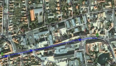 Itt egy random városban a példa, bár itt nincs jobb kezes utca, de tegyük fel A és B pont 2 lerakó hely, A-val kezdtem.
