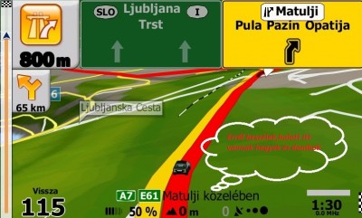 Nem tudom ,hogy valaki észlelte -e de Esztike egy kicsit későn szól a bekanyarodást jelző utcákba.Mire kimondja, hogy Jobbra bekanyarodni tilos már túlmentem az utcán .