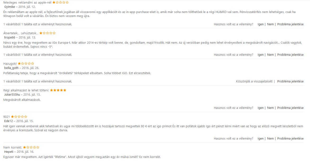 Par éve 80€ megvett iGo app-t (iOS) 2 évig nem frissítették, majd ki adtak egy másik verz.. iOS-re amit újra meg kellet volna venni.